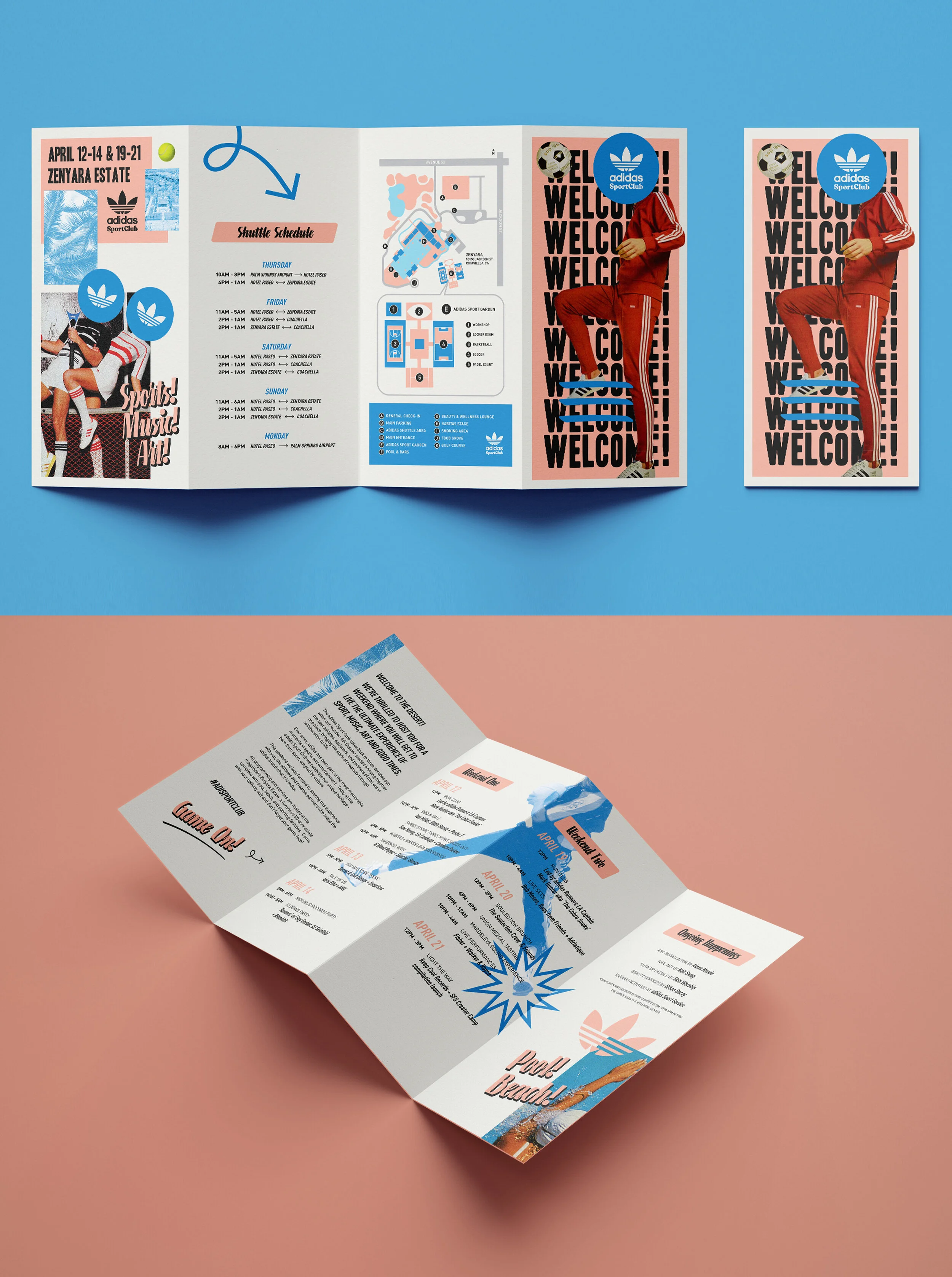 Art-Direction, Graphic Design, promotional video, collateral and environmental including design/layout for Basketball court, Padal Ball Court. Event invitation (physical and digital), signage, banners and wayfinding signs on-site.
